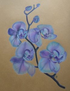 I love orchids! So a colored pencil portrait of this flower was overdue. Here I mixed various brands of colored pencils but mostly used Prismacolors. Their range of colors is simply unbeaten.